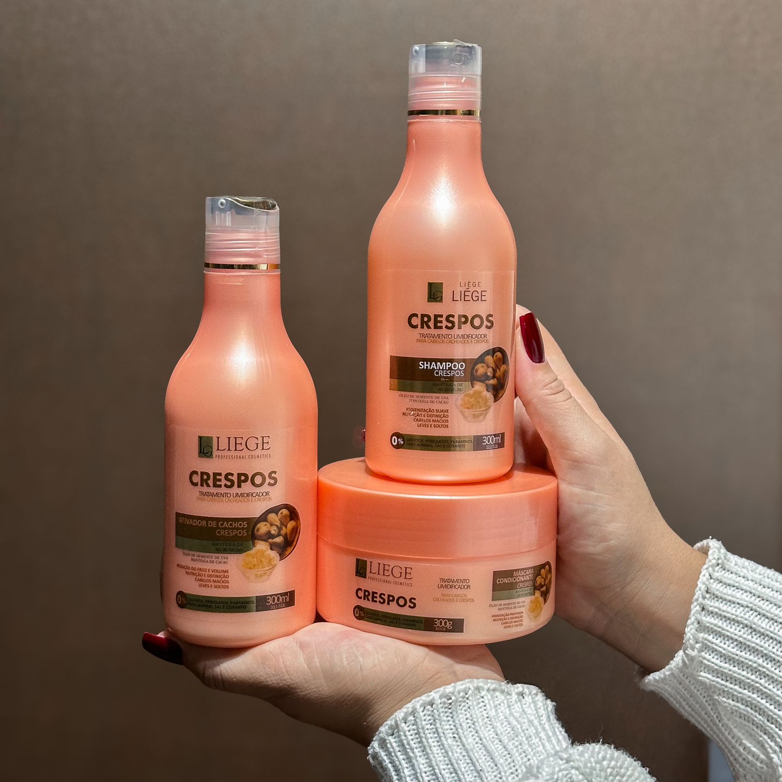 A Linha Crespos Tratamento Umidificador Liege altamente nutritiva possibilita a recuperação da umidade e elasticidade natural do cabelo, mantendo macios, definidos e com aspecto natural por muito mais tempo.