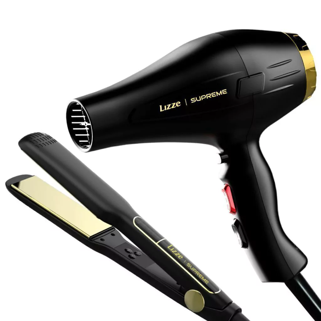 O Secador Lizze Supreme, é o unico atualmente no mercado de equipamentos para salão de beleza que realmente entrega uma potência de 2600W, proporciona agilidade aumentando assim a velocidade do seu atendimento. Se combinado com o uso da Prancha Lizze Supreme, você terá uma bomba de velocidade em suas mãos. Ela é a única no mercado com 40mm, permitindo alisar mechas duas vezes maior que a capacidade das demais pranchas existentes no mercado. Suas placas de titânio, permitem que a temperatura seja regulada e expandida até 485°F.